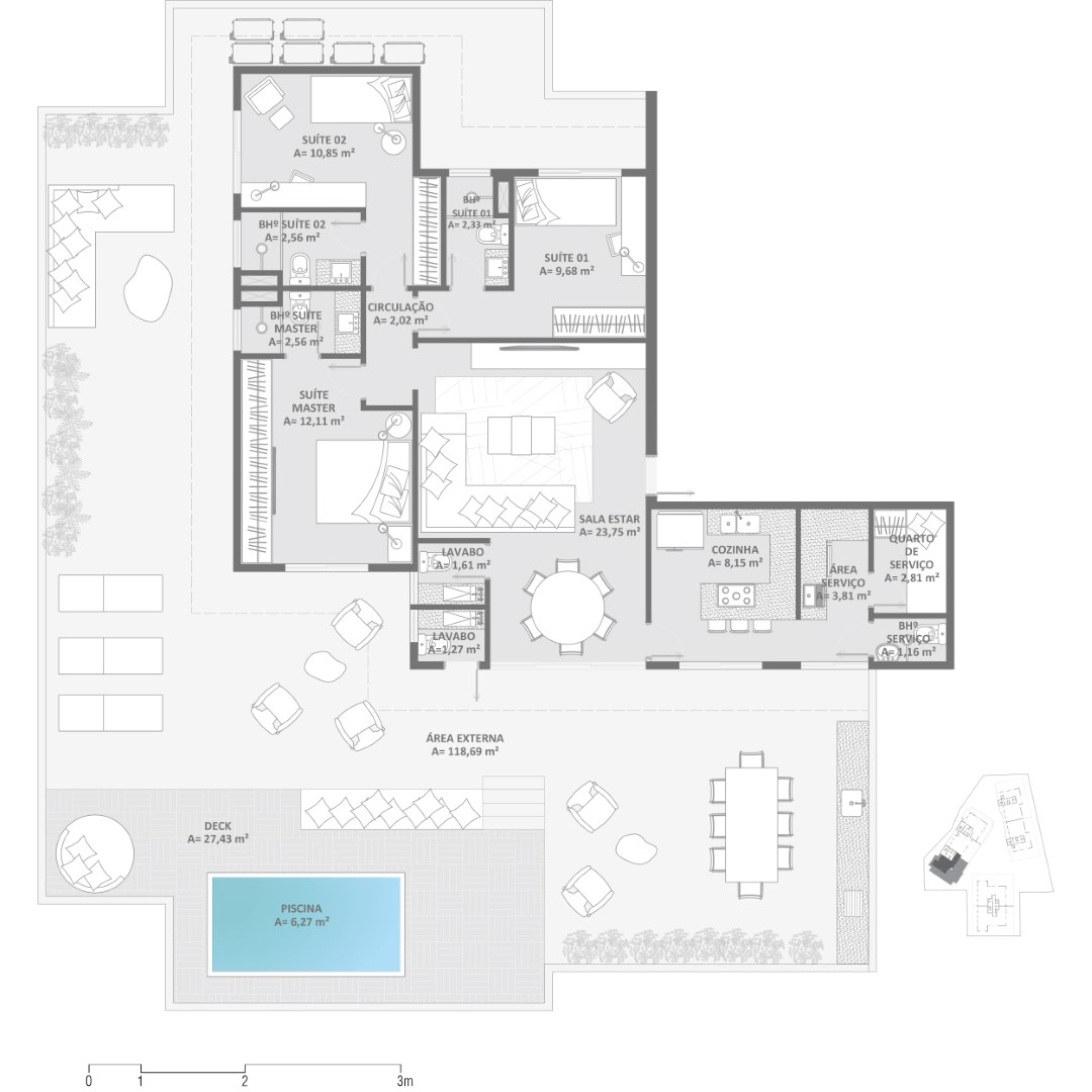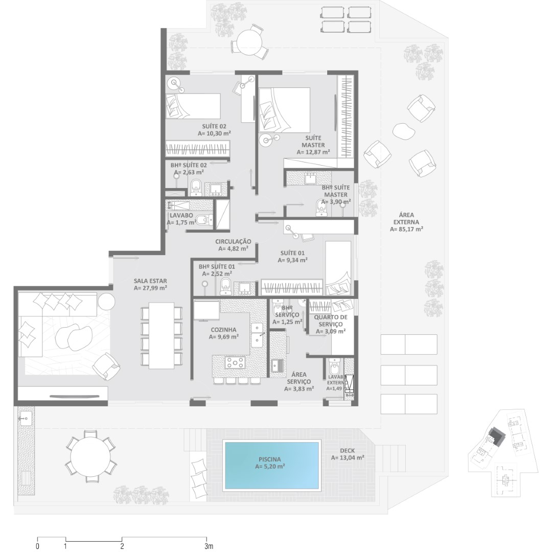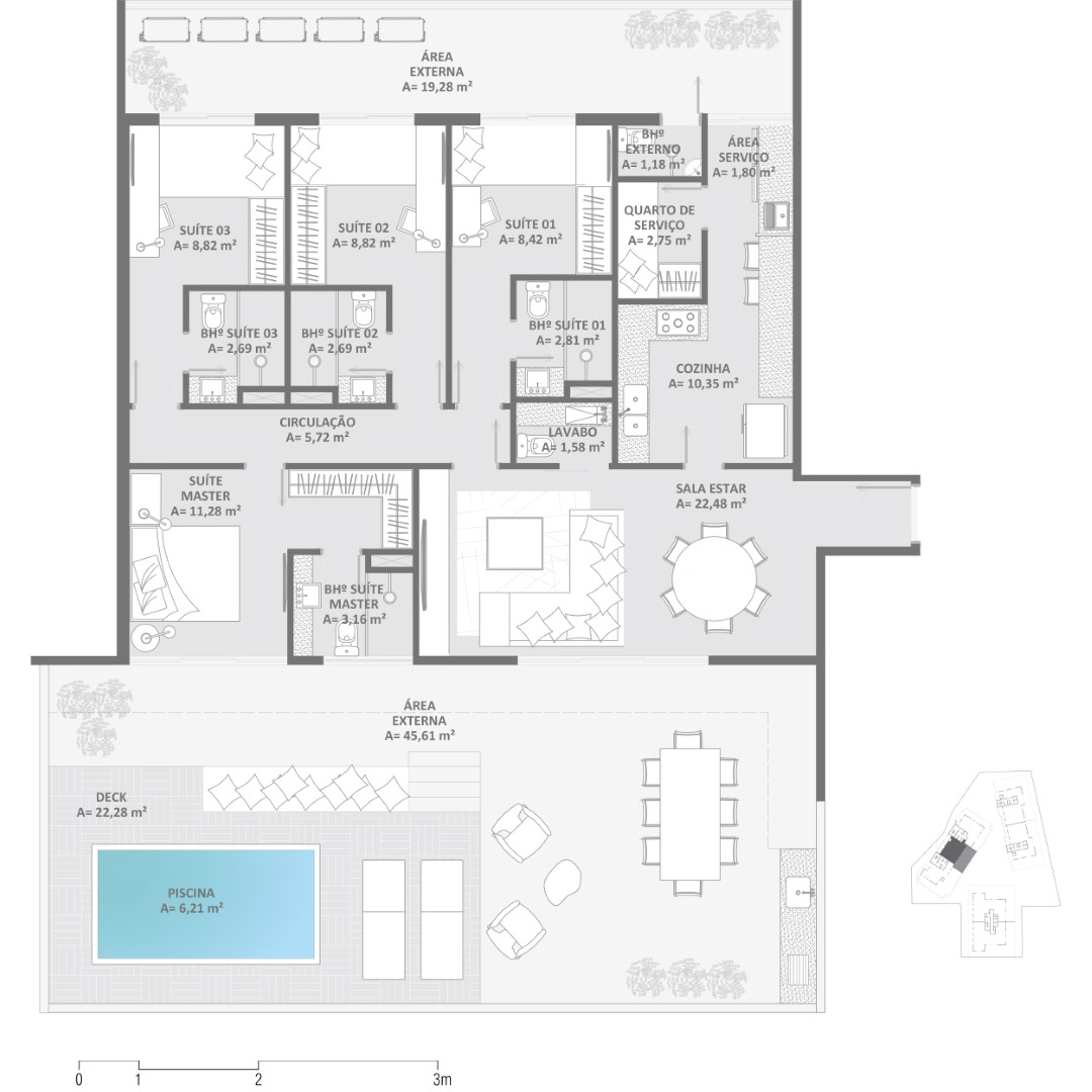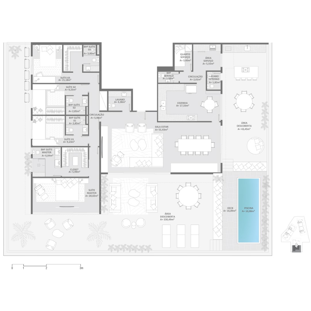 Linear, 3 quartos, all suítes 4 vagas em box privativo.